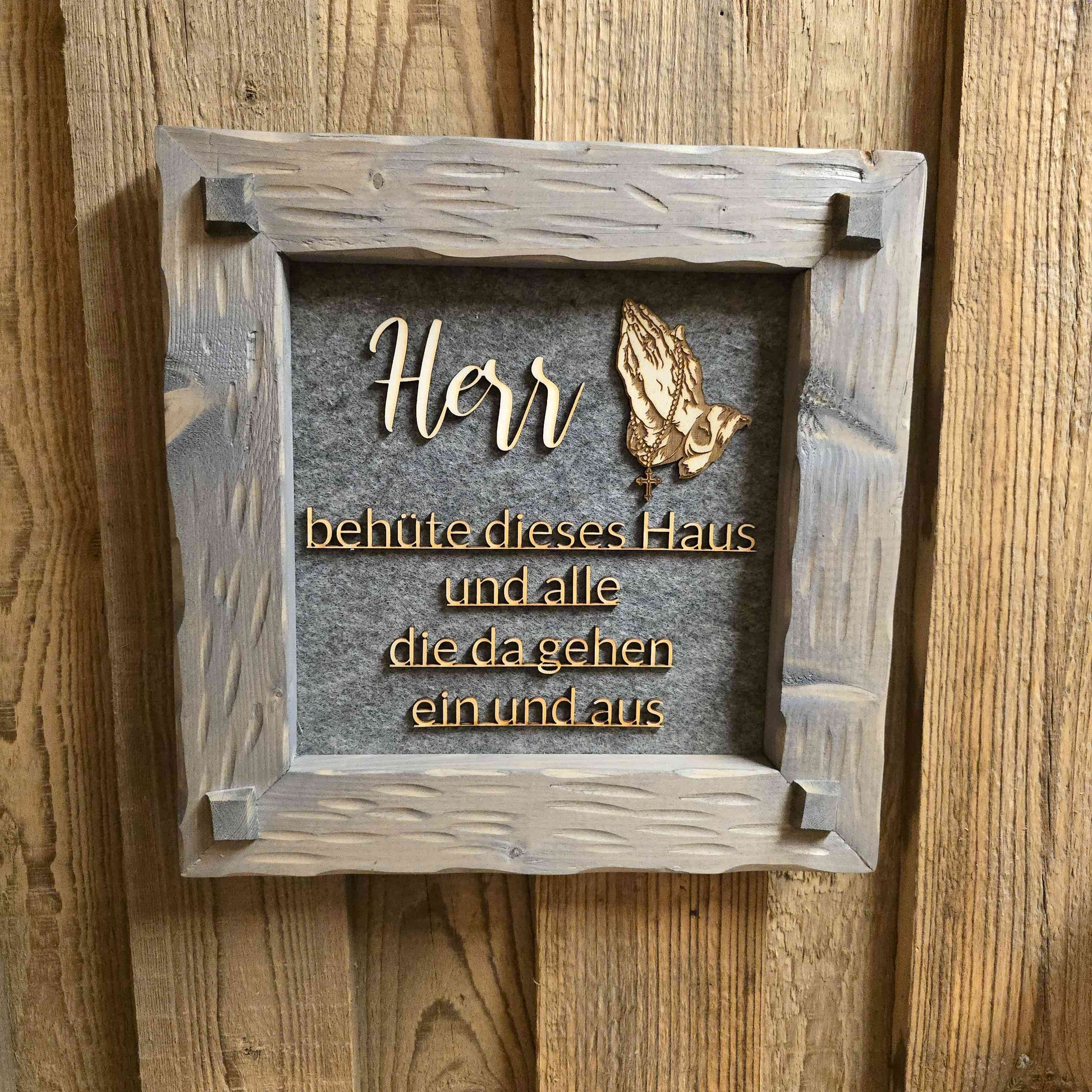 In Handarbeit verziert und mit lieben Holzspruch auf Filz.