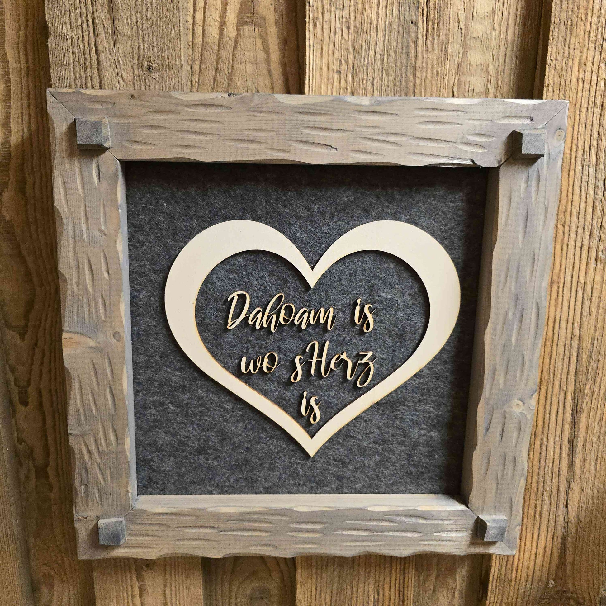 Holzrahmen 35*35cm "Dahoam is wo's Herz is"