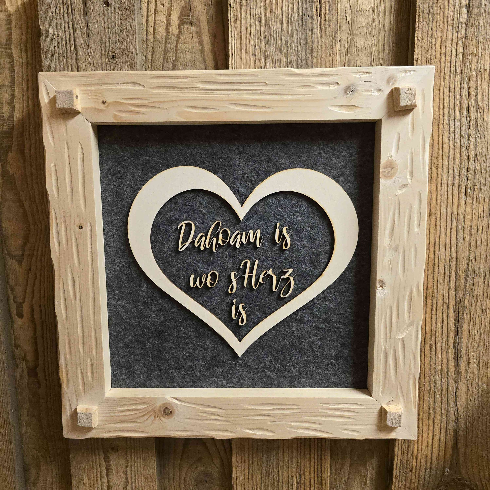 Holzrahmen 35*35cm "Dahoam is wo's Herz is"