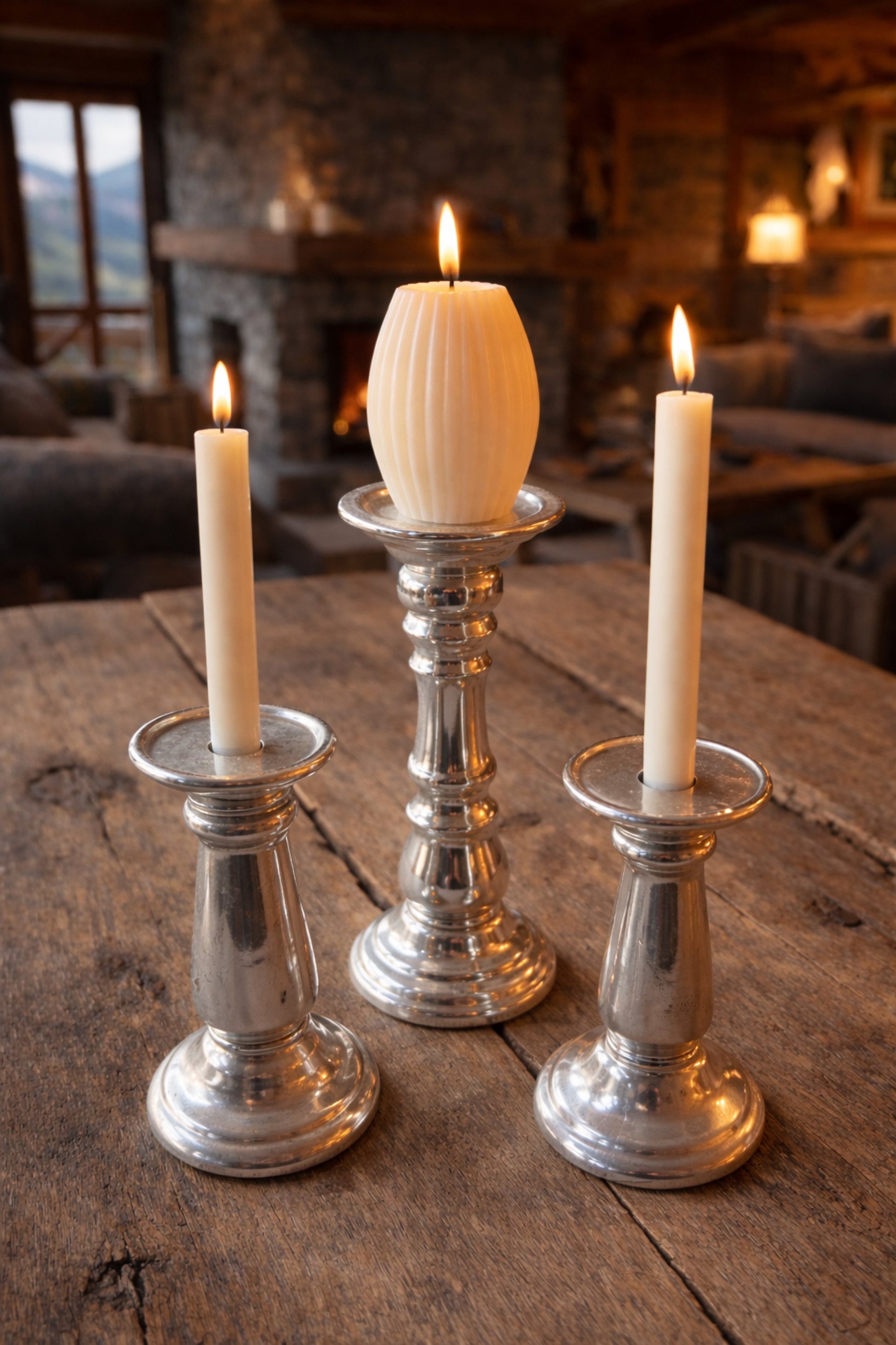 Der kleine und der mittelgroße Kerzenhalter sind für Stab und Stumpenkerzen geeignet.
