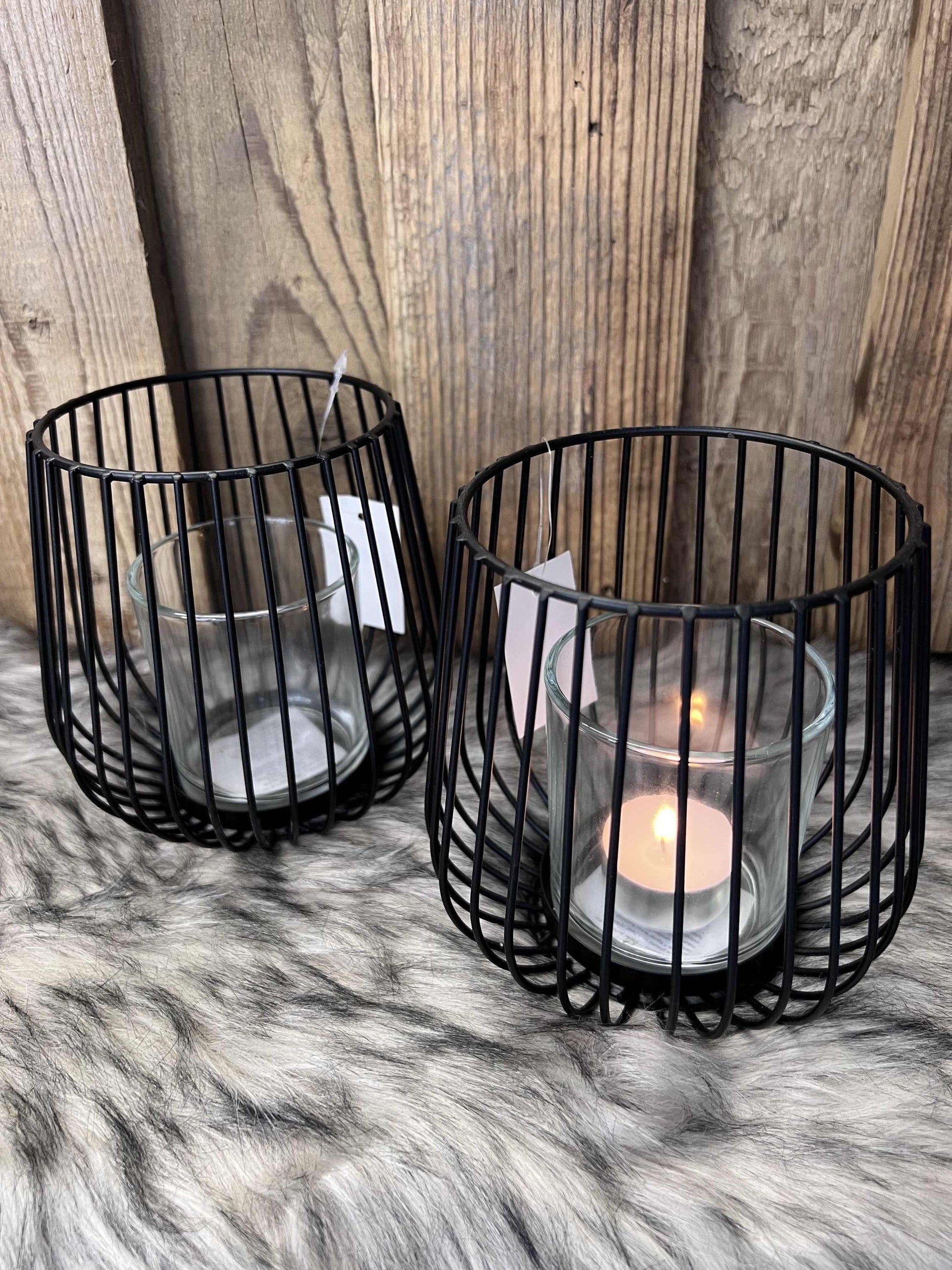 Wunderschönes Windlicht aus Metall mit Glaseinsatz.